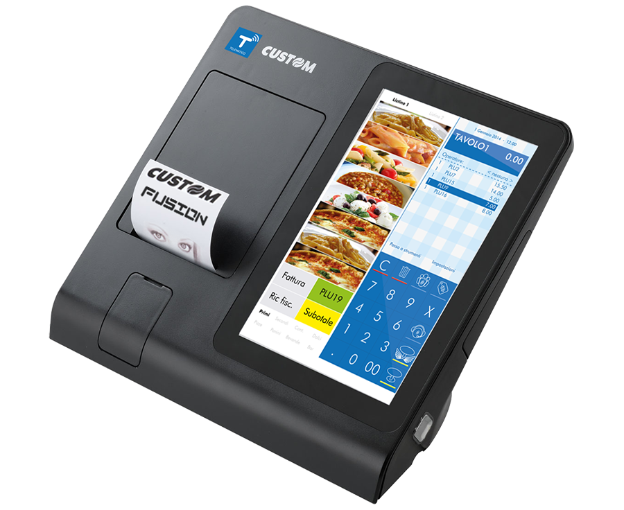 FUSION F RT è il nuovo e rivoluzionario registratore di cassa con capacità di trasmissione telematica realizzato da Custom. Caratterizzato da un design futuristico, compatto ed elegante, è ideale per la gestione del punto vendita moderno sia per la flessibilità e le prestazioni, sia per l’estrema compattezza che ne riduce al minimo gli ingombri sul banco di vendita.