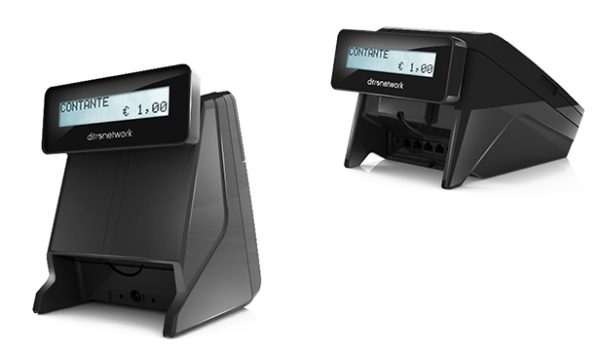 LCD 2×20 alfanumerico retroilluminato su torretta regolabile; VFD 2X20 a fissaggio su stampante, disponibile per posizione orizzontale e verticale |